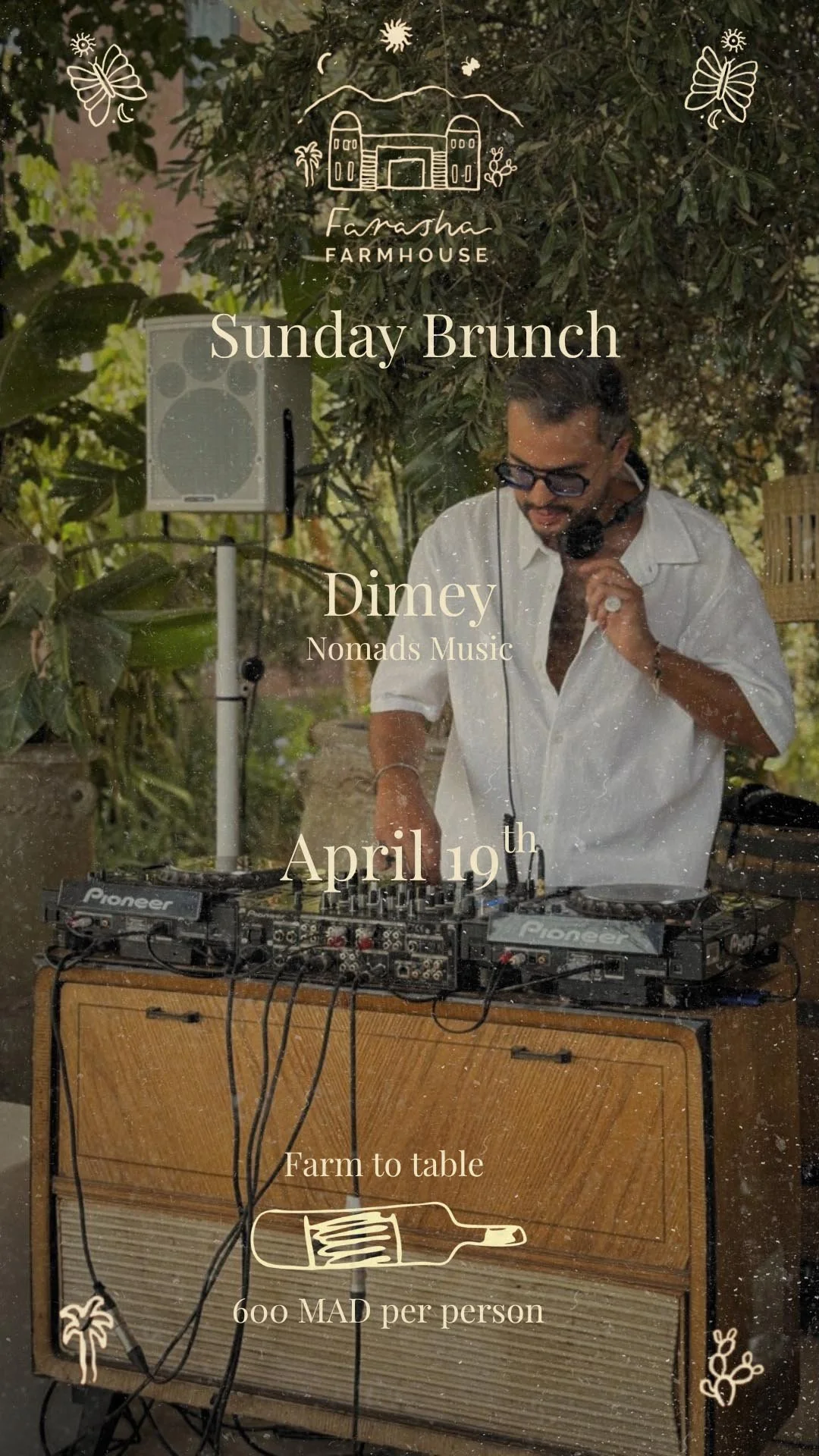 DJs Madota (Berlin) Gaya Brisa (Ibiza), Retro Cassetta (Marrakech) Nomads (Casablanca) rocked the farmhouse for a pre Festival event from poolside through sunset with food stations by Mouton Noir.